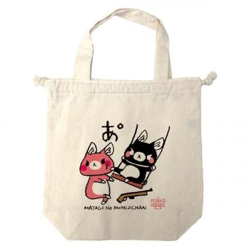 はしあさこ個展2025【あ゜】 巾着トート ≪もみじちゃん&ろくちゃん≫